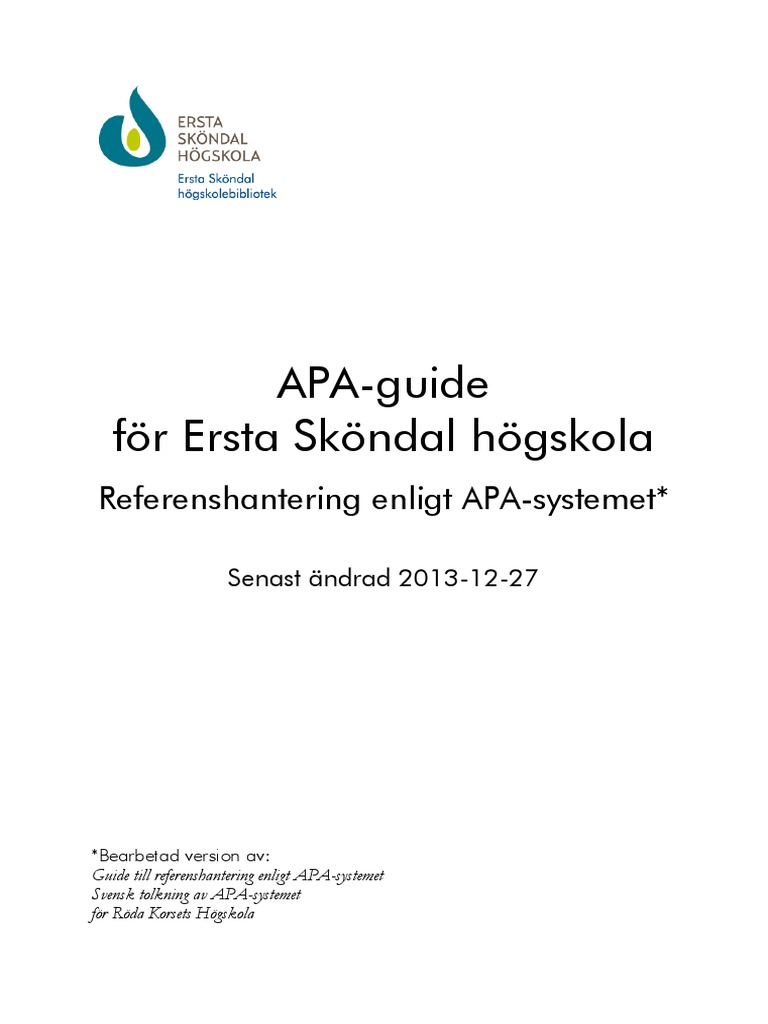 Apa Guide For Ersta Skondal Hogskola Pdf Gratis Nedladdning