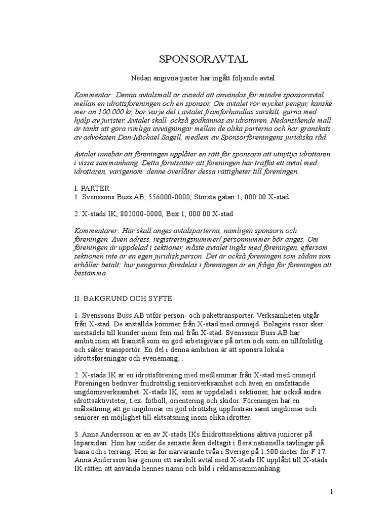 Avtal Mellan Föräldrar Mall