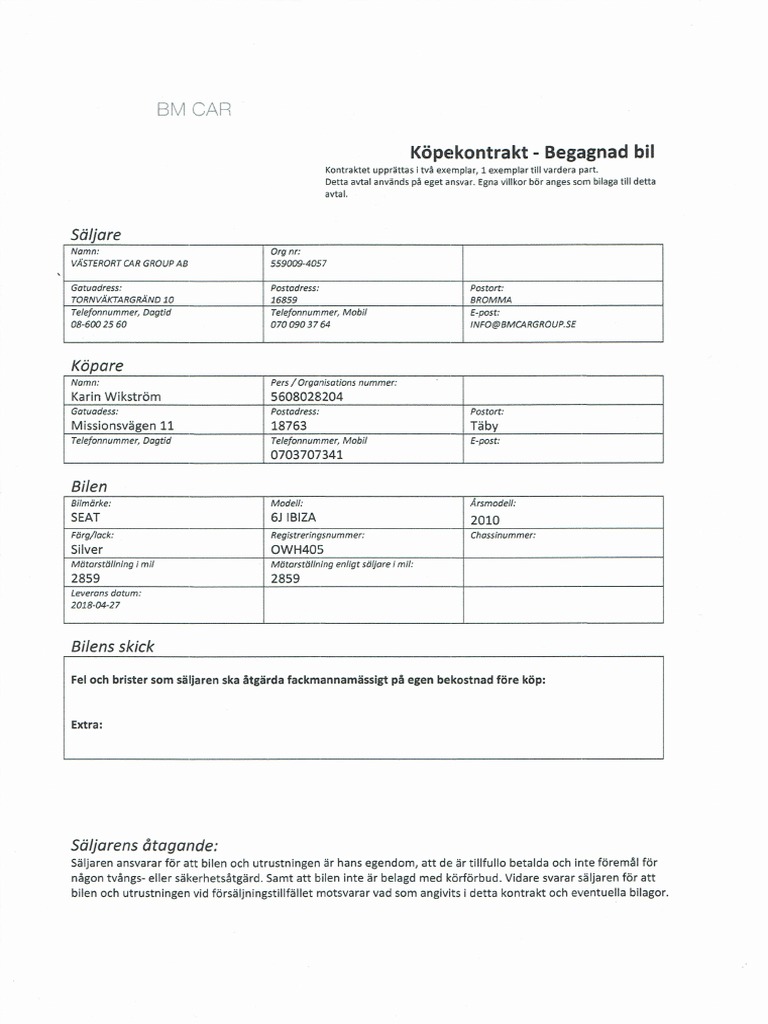Kopekontrakt Begagnad Bil Mall Fran Friamallar Se