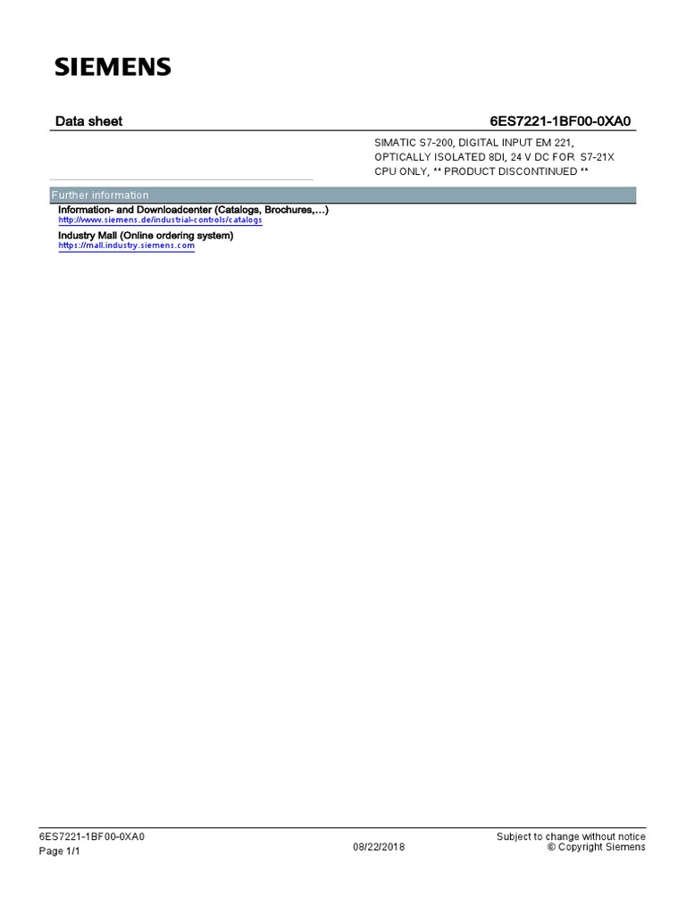 6es72211bf000xa0 Datasheet En
