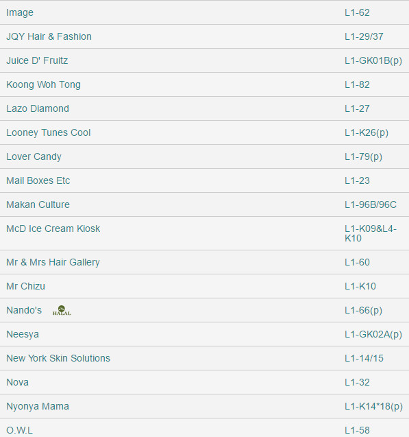 The Mines Shopping Mall Directory